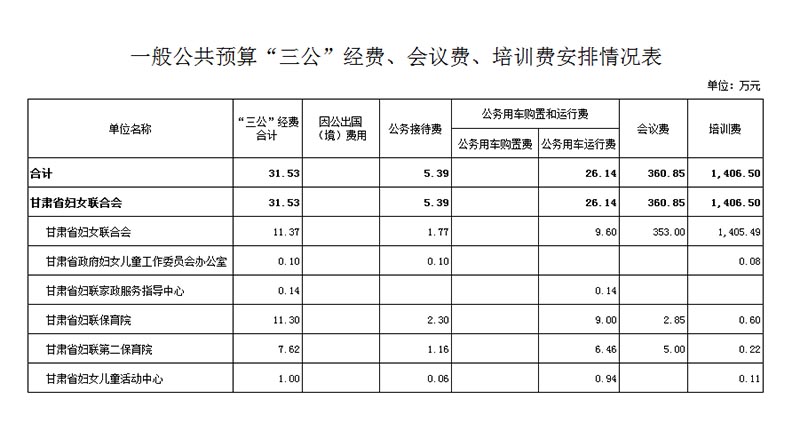 ?。ㄒ唬?2016年“三公”经费财政拨款情况含本级及下属单位,其中公务接待费用5.39万元,公务用车运行费26.14万元,省妇联“三公”经费计划支出共计31.53万元。2015年“三公”经费59.02万元,减少27.49万元,下降47%。