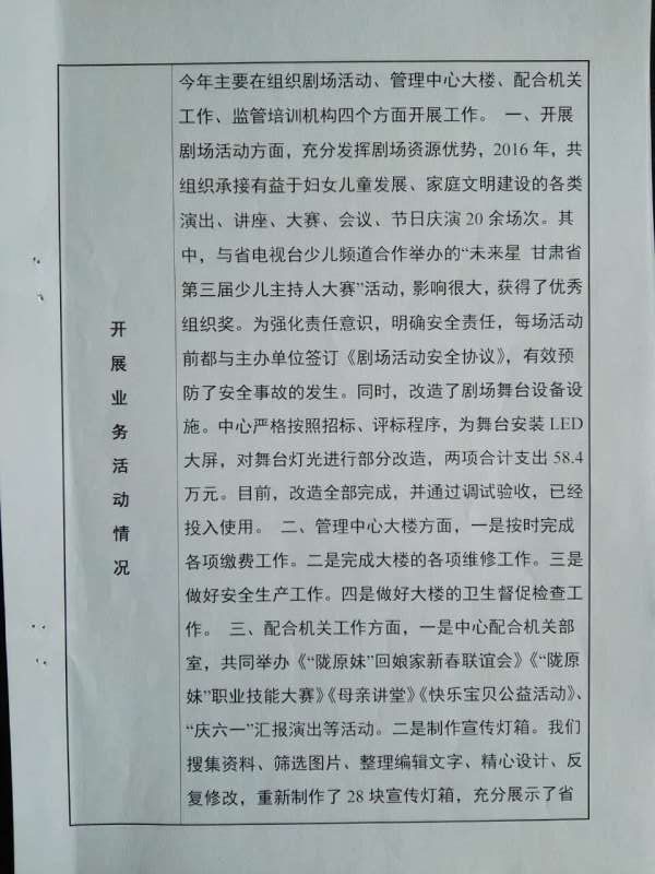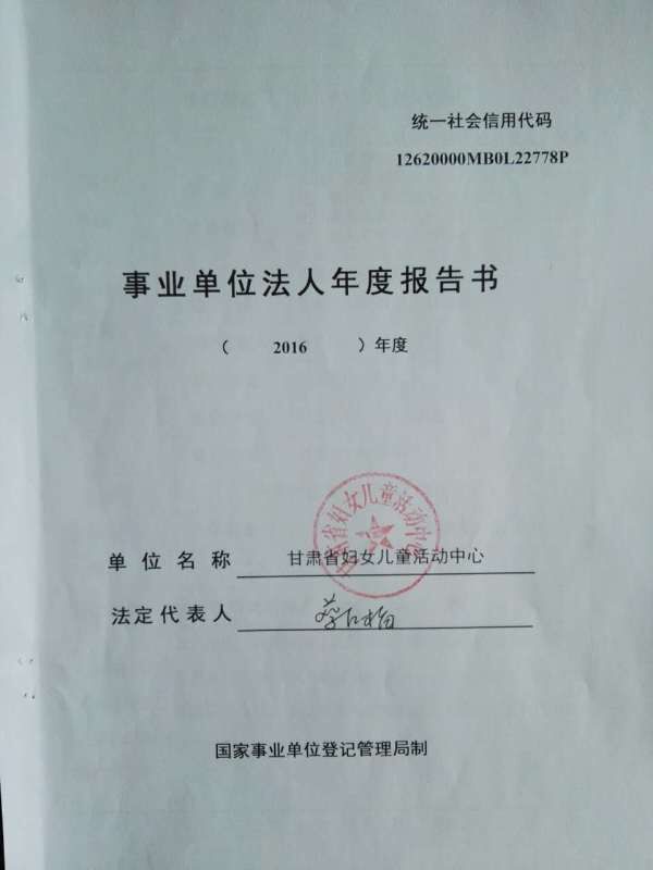 甘肃省妇女儿童活动中心2016年度事业单位法人年度报告书