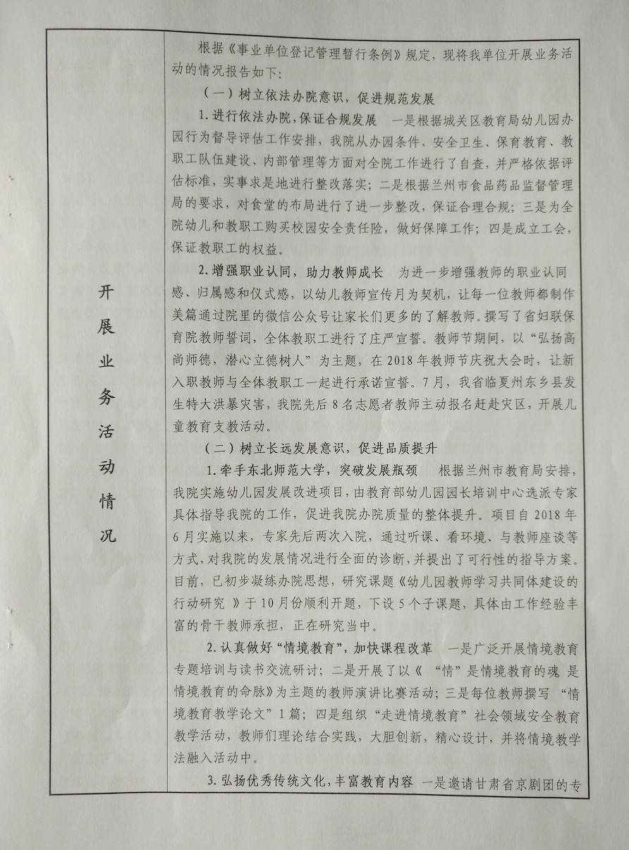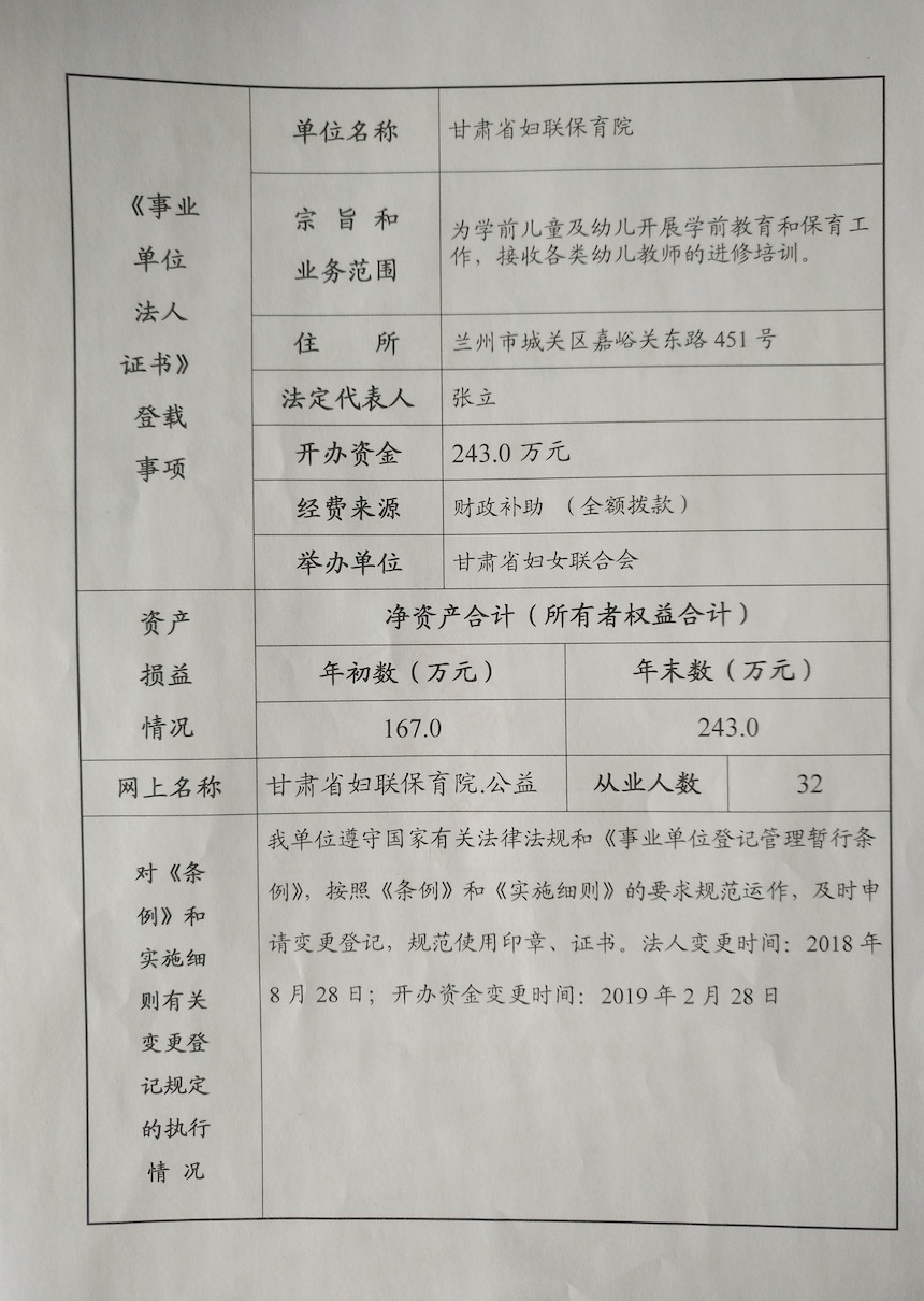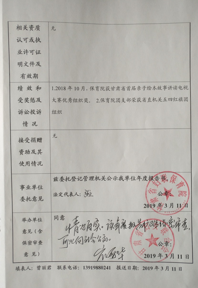 甘肃省妇联保育院2018年度事业单位法人年度报告书