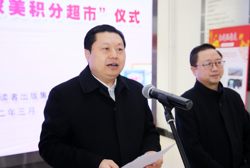 刘永升做了热情洋溢的致辞,介绍了读者出版集团优秀文化精神,并希望“读者方案”和“妇联模式”更好的有机融合,通过“读者”的文化产品进入“巾帼家美积分超市”,用文化的力量引导广大妇女爱国爱家、向善向美,用高质量的“小产品”推动形成引领文明乡风的“大能量”,共同打造文化力量,助力乡村振兴。