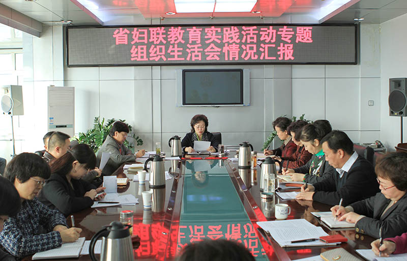 12月6日上午,按照省委党的群众路线教育实践活动领导小组的要求,省妇联召开教育实践活动专题组织生活会情况汇报会。省委第十八督导组成员、省纪委监察厅副地级纪检监察专员尹福山同志,督导组成员张惠蓉、刘炜同志到会指导。 会上,省妇联5个党支部分别从会前准备、查摆问题、谈心交流、撰写对照检查材料、组织召开会议以及整改措施等多个方面对支部召开的专题组织生活会情况进行了全面系统的汇报。 省委第十八督导组成员尹福山同志对省妇联教育实践活动专题组织生活会情况汇报会给予了充分肯定。认为省妇联召开的专题组织生活会情况汇报会有三个特点:一是高度重视、认真准备;二是各有特色、扎实充分;三是整改方向目标明确。他指出整改落实、建章立制环节,是教育实践活动能否取得实效的关键环节,希望省妇联能够深入学习习近平总书记系列讲话精神和省委十二届六次全委(扩大)会议精神,及时组织“回头看”,对症下药,标本兼治,突出工作重点,实行开门整改,认真落实整改方案,确保整改到位,取得成效。 省妇联党组书记、主席韩克茵作总结讲话,她认为各支部的组织生活会开得都比较好、比较实,具有以下五个特点:一是准备充分,二是查摆深刻,三是批评真诚,四是分析透彻,五是整改务实。她对做好省妇联教育实践活动第三环节工作提出几点要求:一是要继续深化学习,认真学习习近平总书记一系列重要讲话精神、十八届三中全会精神、甘肃省委十二届六次全委(扩大)会议精神及会议通过的《中共甘肃省委关于贯彻落实〈中共中央关于全面深化改革若干重大问题的决定〉的意见》以及中国妇女十一大精神。二是要认真制定个人的整改措施,每一个党员干部都要认真制定个人的整改措施。要针对组织生活会大家提出的意见建议,紧扣个人对照检查材料中查摆出的突出问题,有针对性地提出具体的改进措施。三是要加大整改落实力度,要着力抓好整改方案的公示与落实工作,启动专项整治方案的落实及相关制度的公开与执行监督,确保各项制度有效落实、切实管用。四是要加大宣传力度,不断传递妇联组织开展教育实践活动的正能量,进一步树立妇联组织真诚服务妇女群众的良好形象。 会议由省妇联党组成员、副主席康娅红主持。省妇联班子成员,机关全体党员干部及下属事业单位负责人参加了会议。