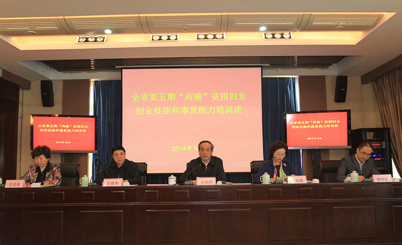 开班仪式由韩克茵主席主持。她说,在吴德刚部长的亲切关怀下,从2011年起,省委组织部与省妇联已联合举办了五期“两癌”贫困妇女创业技能和康复能力培训班,对250名“两癌”贫困妇女进行了创业技能和康复能力培训。培训班的举办得到了“两癌”妇女的广泛赞誉和社会各界的好评。为了让更多的“两癌”贫困妇女都能参加培训,吴德刚部长决定在今年多举办一期培训班,将培训对象由农村扩大到城镇下岗失业或享受低保的“两癌”妇女,使“两癌”妇女培训工作实现了86个县市区全覆盖。