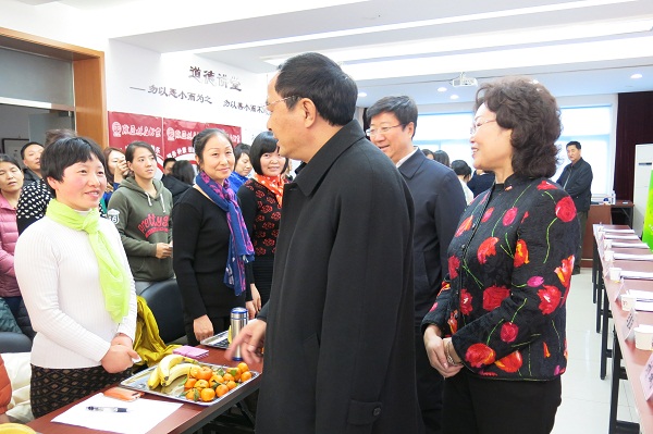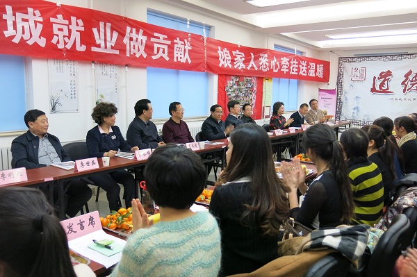 12月21日,位于北京朝阳区安慧里社区居委会的富平家政“陇原妹”城市融入活动基地,迎来了热闹的一天。省委副书记欧阳坚、副省长王玺玉和省委农办、省妇联、省扶贫办有关领导一同来到基地,看望慰问在北京创业务工的60余名“陇原妹”代表,并与她们座谈交流,送上来自家乡的新年祝福。