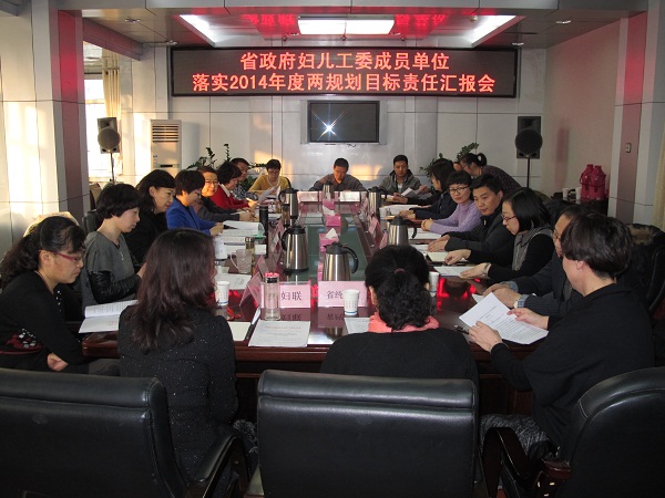 省政府妇儿工委坚持落实目标管理责任制和督导考核长效机制,每年细化两规划目标任务,逐级分解落实,层层靠实责任,确保各项目标任务落到实处。在去年4月召开的省政府妇儿工委全体扩大会议上,省政府妇儿工委与各成员单位签订了2014年实施两规划目标责任书。为了全面掌握一年来各成员单位两规划目标责任完成情况,1月23日,省政府妇儿工委抽调省卫生计生委、省统计局相关处室负责人组成考评组,通过听取汇报、现场点评打分的形式,分两批对31个成员单位2014年度两规划目标责任完成情况进行了考核。