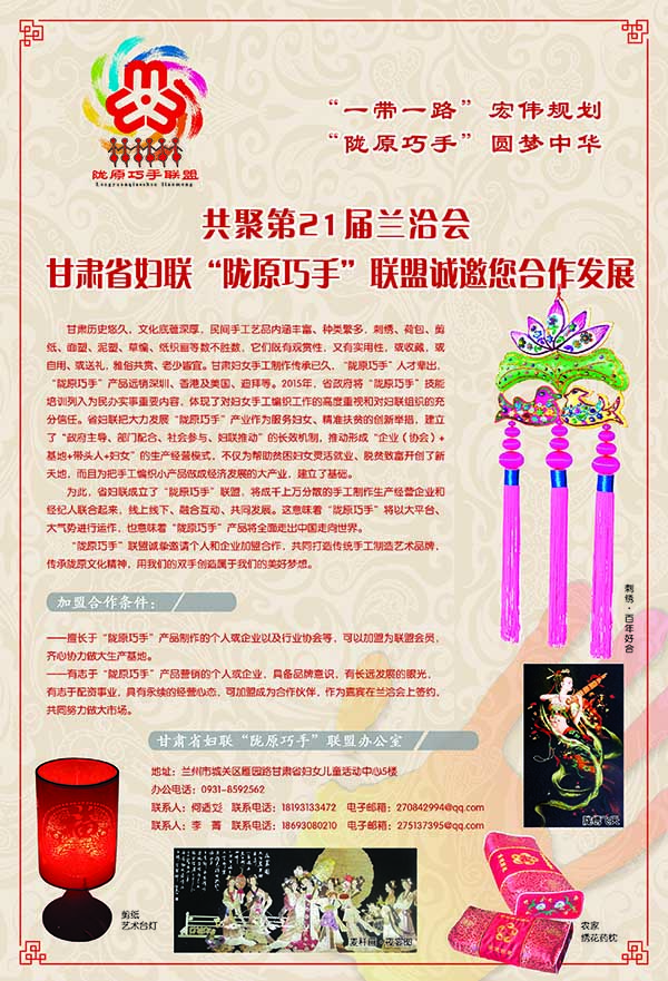 甘肃省妇联“陇原巧手”联盟诚邀您合作发展