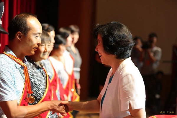 许立华指出,家庭和谐建设妇女是关键,孝老敬老、相夫教子,女性更有责任感、更有主导优势。希望两岸姐妹在“尊老孝母”模范榜样力量的感召下,能够做家庭和谐的建设者、尊老孝亲的践行者和中华传统文化的传承者,以孝敬亲情和睦家庭,以明礼贤德教化子女,以诚信友善融洽邻里,以良好家风沁润社会。