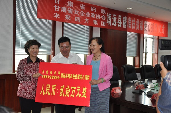 9月7日,精准扶贫献爱心捐赠仪式在靖远县举行。省妇联巡视员管春梅,省女企业家协会会长、未来四方集团董事长瞿金叶,中国人民大学收藏协会会长周玲等爱心企业家参加捐赠仪式。