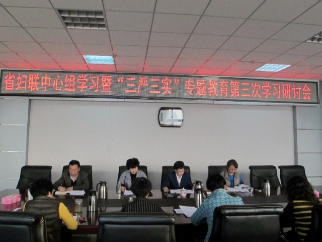 11月27日,省妇联围绕“严以用权,真抓实干,实实在在谋事创业做人,树立忠诚、干净、担当的新形象”主题,召开党组中心组学习暨“三严三实”专题教育第三次学习研讨会。省妇联党组成员、副主席康娅红主持会议,在家班子成员、厅级领导和机关副处级以上干部、各下属单位负责人参加会议。