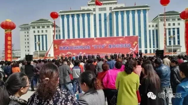 三月如歌,万物齐吟。在阳春三月的美丽季节,纪念全省文化科技卫生“三下乡”20周年集中示范活动在临洮县人民广场隆重举行,为体现妇联组织围绕大局、服务基层、服务妇女的务实创新精神,为全省精准扶贫精准脱贫贡献巾帼力量,省妇联党组成员、副主席董晓玲带领相关部室工作人员同市县妇联一起参加集中宣传慰问活动,为广大妇女群众送上了实惠、贴心的温暖。