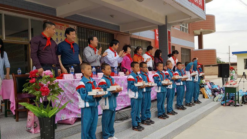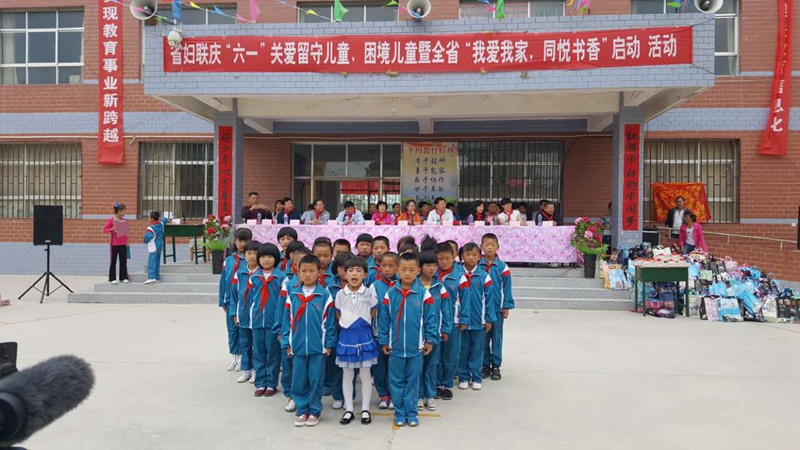 活动丰富多彩,校园里爱心涌动,暖意浓浓。少先队员向来宾敬献了红领巾,“爱心妈妈”与52名留守儿童结对、认亲、送礼物。兰州欢乐源体育文化传播有限公司启动了“小小少年 筑梦飞翔”爱心公益行活动,组建了由留守儿童组成的“小小少年 筑梦飞翔”足球队,公司无偿为20名足球队员配置了专业服装,孩子们个个脸上露出了幸福的笑容。平川区委副书记、区长胡建伟宣布“小小少年 筑梦飞翔”足球队组建,并与兰州欢乐源体育文化传播有限公司总经理张继东先生共同为足球队揭牌。启动了全省“我爱我家·同悦书香”亲子阅读活动,省妇联为孩子们赠送了价值2万元的图书,全校200多名学生分年级诵读了古诗和自编的赞颂老师、感恩父母的诗。孩子们深情、响亮的朗读声回响在校园,赢得了参加活动的嘉宾和家长的阵阵掌声。