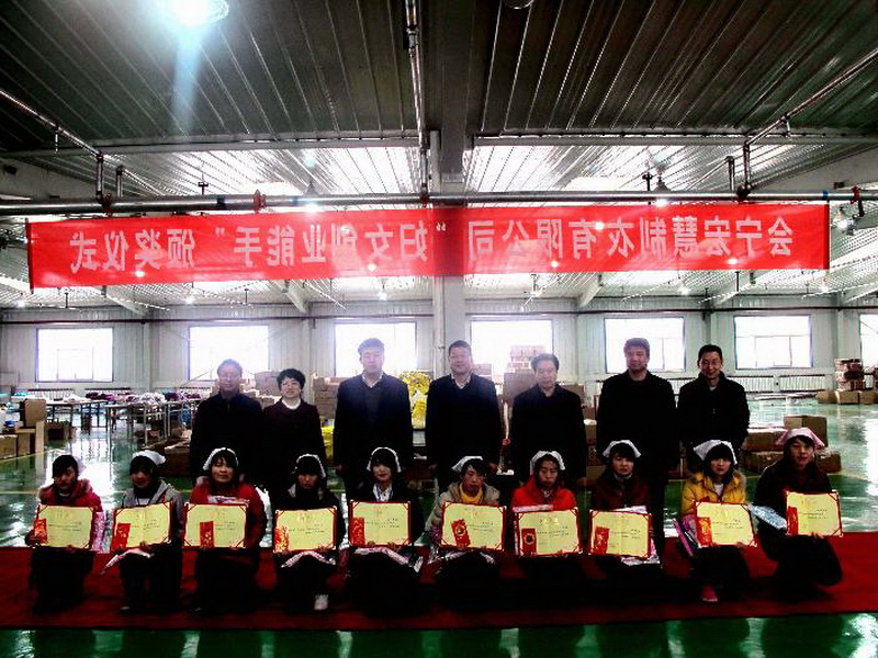 县委常委、组织部杨部长做了热情洋溢的讲话,强调:会宁宏慧制衣有限公司是我县招商引资工作的丰硕成果,作为首批入驻工业园区的企业,公司全体女职工在主管部门的领导下,在各级妇联组织的引导下,勇挑重担,积极参与,献智出力,拼搏奉献,为企业的发展做出了重要贡献,也为会宁现代工业发展起到积极的引导作用。今天受表彰的10名女工就是她们中的优秀代表。希望广大女职工继续和发扬团结奋斗的光荣传统,以先进为榜样,不断提高生产技能和工作水平,全面提高自身素质,立足自身岗位,创先争优、奋发有为,争当企业自主创新排头兵,谱写巾帼创业创优新篇章!希望妇联组织积极搭建服务平台,千方百计牵线搭桥、引资引智、培训技能、广开渠道,服务妇女自主创业、实现就业,引领妇女牵手发展、抱团取暖,鼓舞妇女迎难而上、逆势上扬。