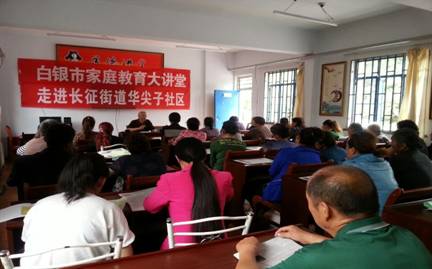 为了进一步贯彻落实省、市家庭教育五年规划,帮助和引导广大家长掌握先进家教理念和科学教育知识,平川区结合创建全国文明城市有关要求,邀请白银市家教讲师团开展了以“为国教子、以德育人”为理念的家庭教育大讲堂活动,利用一周时间,先后在兴平路育才社区、兴平社区、沁川社区,长征街道华尖子社区、化工社区、周家地社区,电力路向阳社区、水沟沿社区,红会路红光社区、红星社区,宝积乡墩墩滩村,水泉镇牙沟水村,共和镇兄弟村等10各个社区3个村举办了13场次讲座。