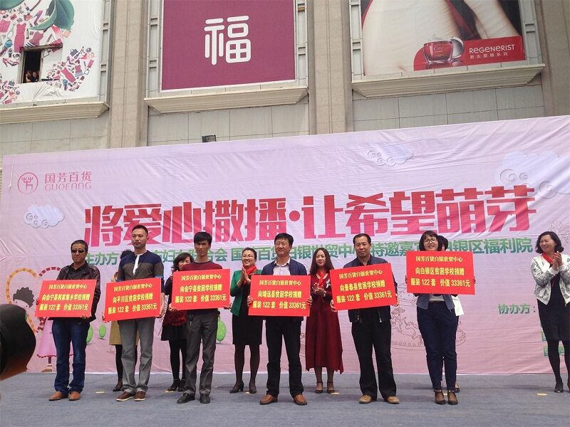 5月28日下午,白银市妇联联合国芳百货白银世贸中心举办了“将爱心撒播·让希望萌芽”爱心捐赠活动?;疃殖?,国芳百货白银世贸中心向我县困境儿童捐赠了价值3万多元的爱心衣物。市妇联向国芳百货白银世贸中心授予“爱心企业”牌匾。县妇联负责人表示这批爱心衣物 将在“六一”儿童节来临之际发放给我县困境儿童。