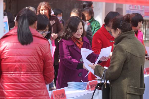 为进一步深化法制宣传和维权服务,切实关注妇女民生,努力营造男女平等良好社会氛围,在《中华人民共和国反家庭暴力法》颁布实施一周年之际,白银市妇联联合市司法局、白银区妇联、中心街社区阳光心理成长咨询室开展了以“建设法治白银·巾帼在行动----幸福家庭·与法同行”为主题的“三八”妇女维权周系列活动。