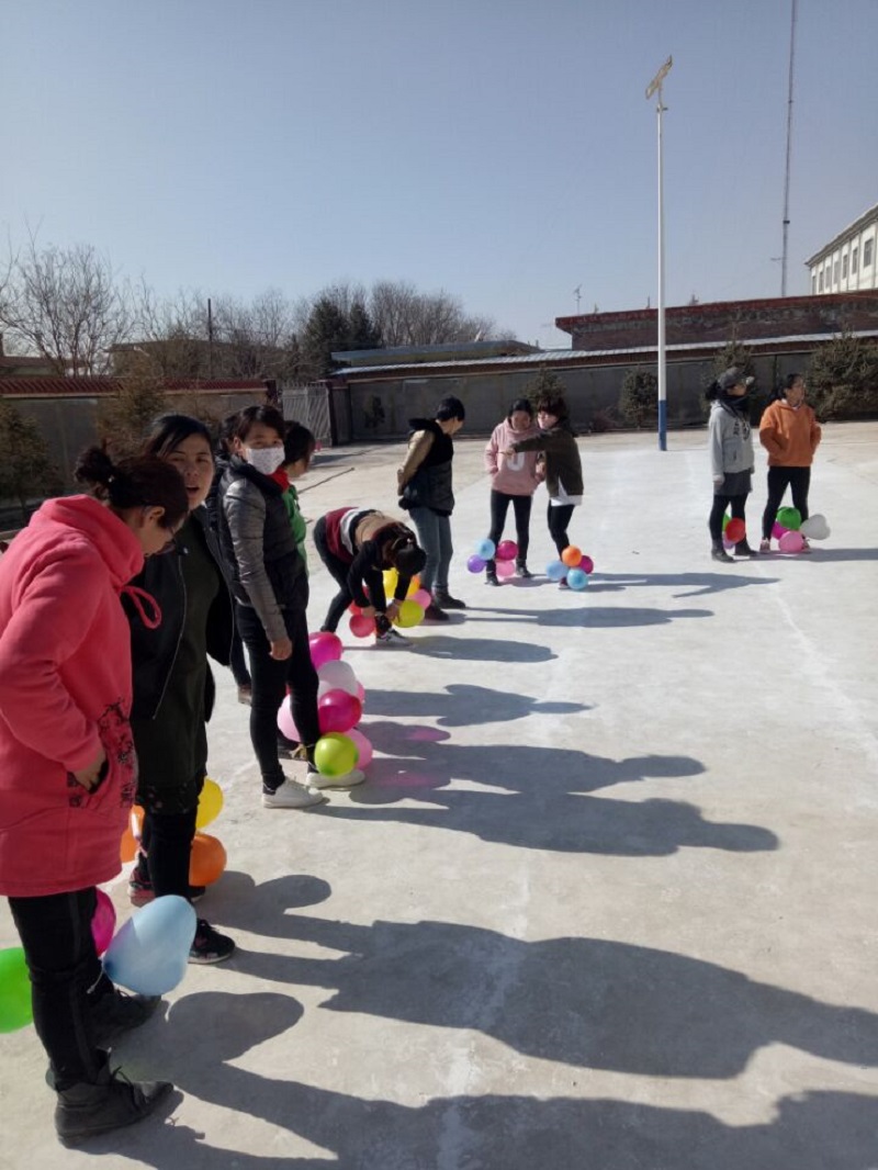 “加油、加油……”3月8日,靖远县五合镇举办踩气球、抢板凳等丰富多彩的文体活动,庆?!叭恕备九投?,通过活动展示了全镇妇女干部健康向上、乐观进取的风采,表达了她们对劳动与生活的热爱之情。
