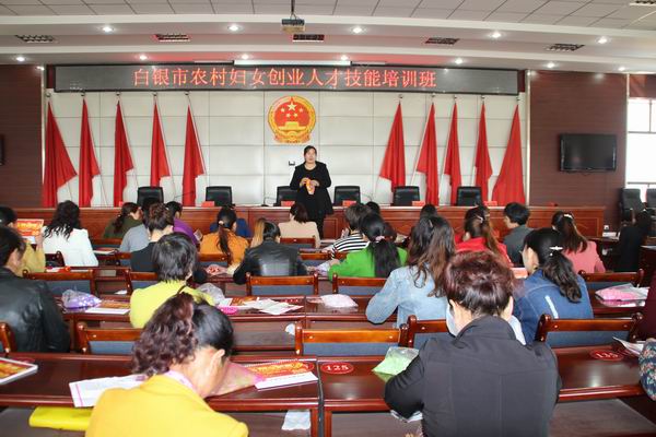 4月6日上午,白银市妇联“万名人才扶贫行动”第一期农村妇女创业人才技能培训班在靖远县开班,市妇联党组书记、主席杜汉杰,靖远县政协副主席路永通参加开班仪式,60名贫困村的农村妇女参加培训。