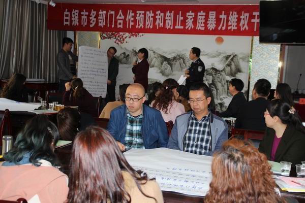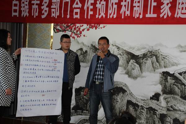 本次培训班邀请了反家暴工作者、靖远县公安局法制室主任焦向东授课,参训学员重点学习了《反家庭暴力法》、《白银市家庭暴力告诫制度》、多部门联动反家暴“靖远模式”、反家暴工作“五步法”等内容,并对反家暴“靖远模式”进行了分组讨论。