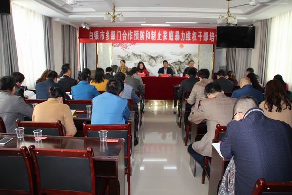4月13日,白银市妇联“多部门合作预防和制止家庭暴力维权干部培训班”在靖远县开班,市妇联副主席王月萍,靖远县人大副主任刘正重参加开班仪式,来自市、县(区)妇联、法院、检察院、教育、公安、民政、司法、卫计、综治部门的60名分管领导和维权干部参加培训。