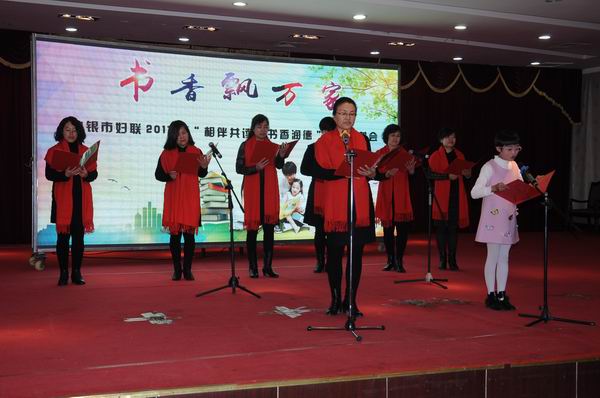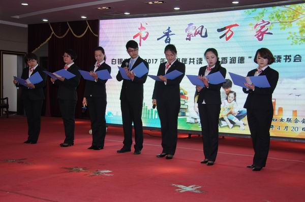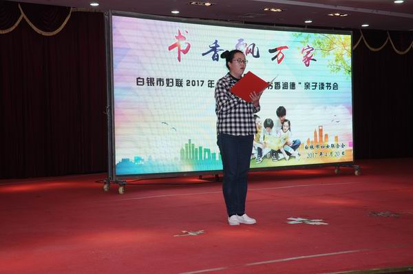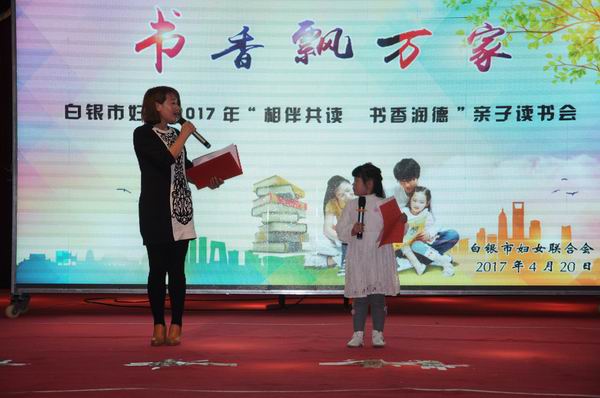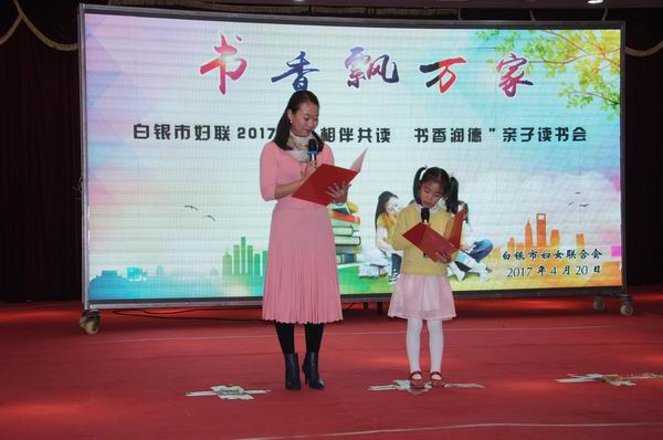 在“世界读书日”来临之际,4月20日下午,市妇联举行“相伴共读 书香润德”亲子读书会,目的是推动大家热爱阅读、提升素养、传承中华优秀传统文化,通过阅读与朗诵让读书成为一种习惯,一种生活方式,推动建立书香家庭、书香白银。市人大常委会副主任温旭东、市政协副主席常升文、市政府副秘书长王志磊出席活动,150名市直机关女干部、各行各业诵读爱好者参加活动。