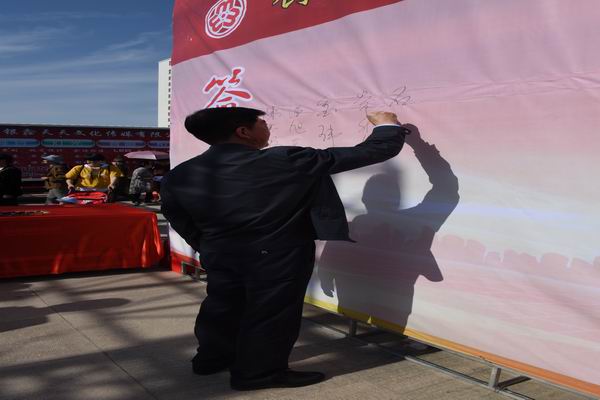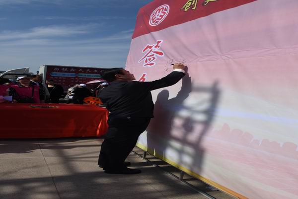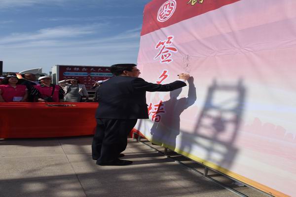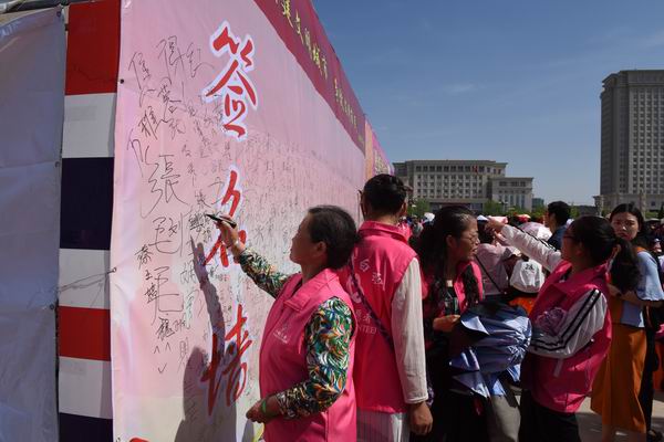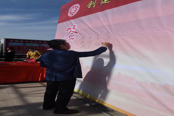 出席活动的领导、巾帼志愿者和群众在“创建文明城市,争做文明市民”签名墙上依次进行了签名承诺