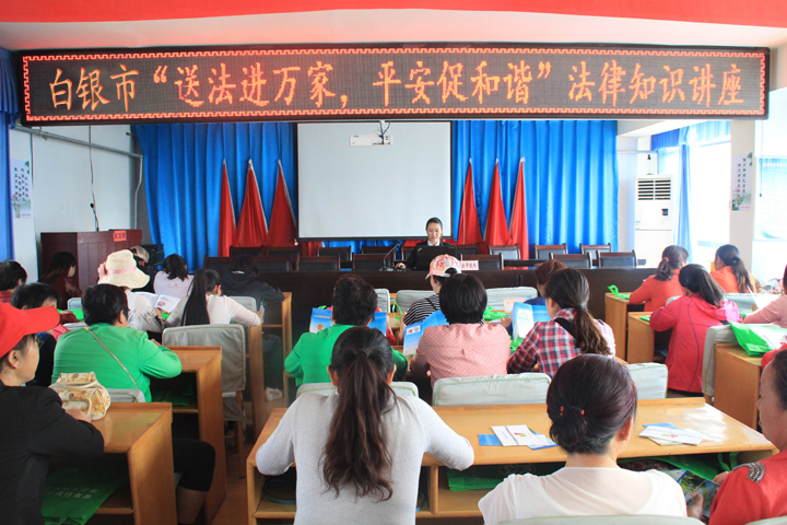 为深入推进法治宣传教育,大力弘扬法治精神,增强家庭成员的法律素质和法治意识,牢固树立并自觉践行社会主义法治理念,6月12日至15日,白银市妇联组织巾帼志愿者走进景泰县、靖远县开展了“送法进万家,平安促和谐”主题活动,8个社区内的1600余名居民参加活动。