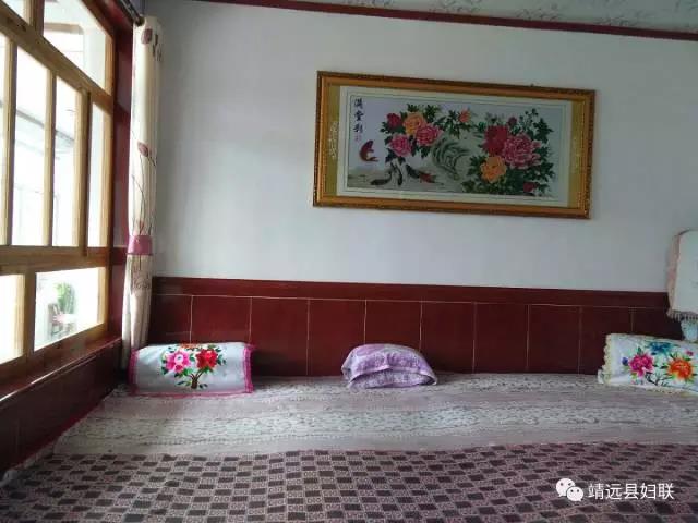 靖远县东升镇新寨村的王明霞家是一个幸福美满的家庭,家里人一直都保持着良好的生活习惯。屋内家具摆放错落有致,地面窗台干干净净,墙面悬挂的“八骏图”和“满堂彩”栩栩如生,显示了女主人精巧的手工。优美整洁的环境包含着全家人的心血。王明霞是村妇联主席,自从开展“美丽庭院”创建活动以来,她就积极宣传倡导,鼓励动员全村的妇女姐妹积极加入到此项活动中来。