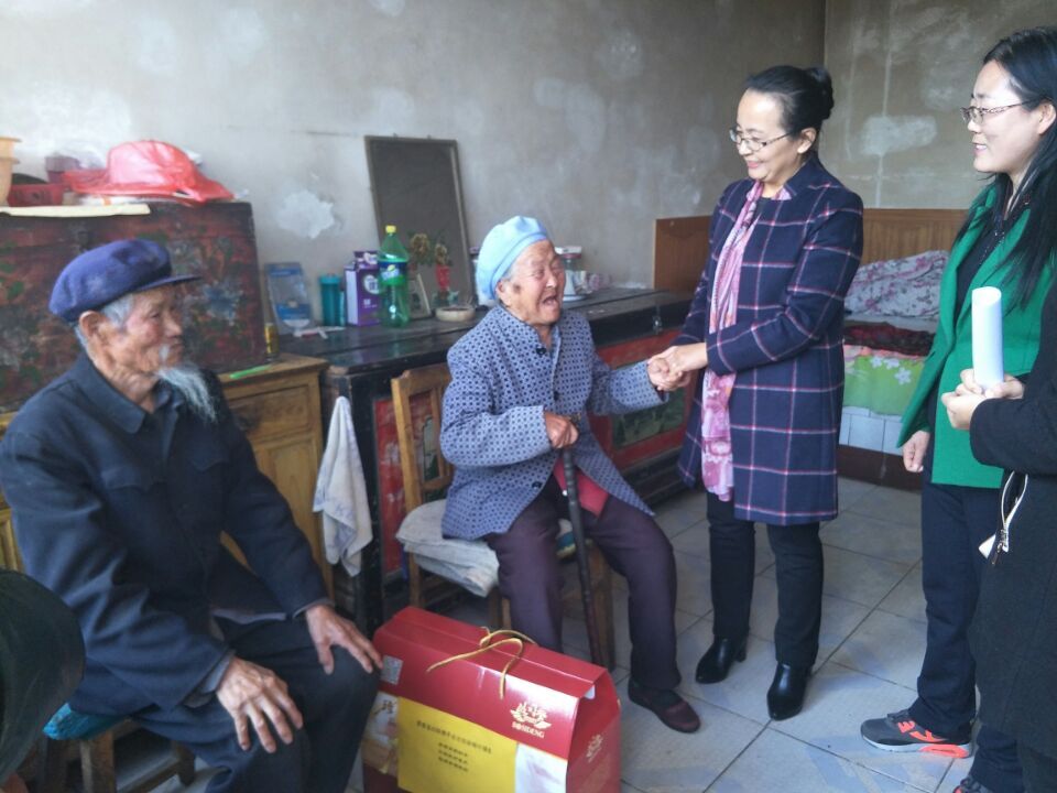 这次重阳节慰问活动慰问了周文静、张桂梅、李生信等3位老人。周文静老人已是86岁高龄,但老人家身体依然硬朗,而且还能下地干农活。张桂梅和李生信夫妇两都已80多岁,李生信老人身体硬朗,张桂梅老人虽然得过脑溢血,行动不便,但是思维清楚,两家老人都说他们生活美满,家庭幸福,多亏了党的好政策和家人的精心照顾。