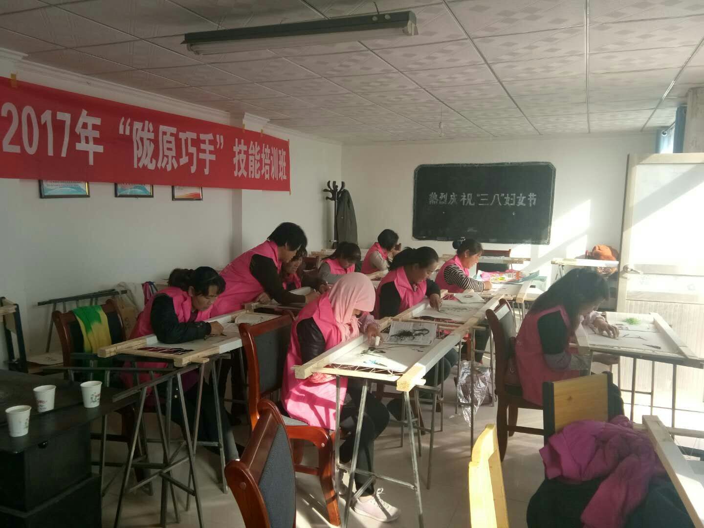 11月1日,景泰县第13期“陇原巧手”技能培训班在喜泉镇陈庄村开班,40名热爱手工刺绣的妇女参加手工刺绣技能培训。