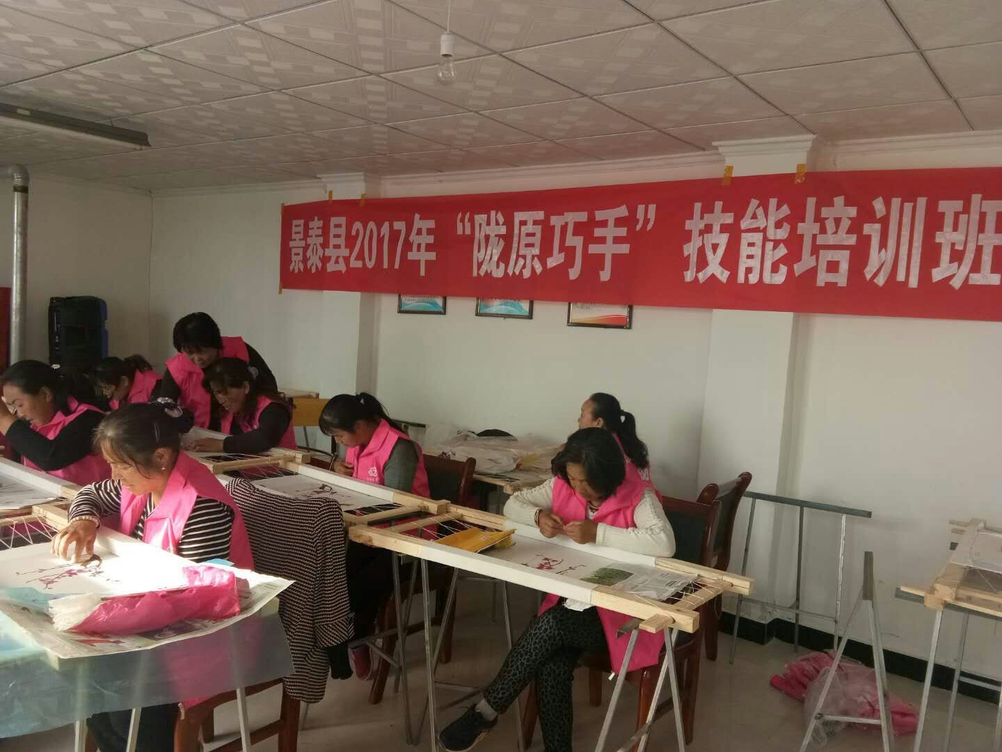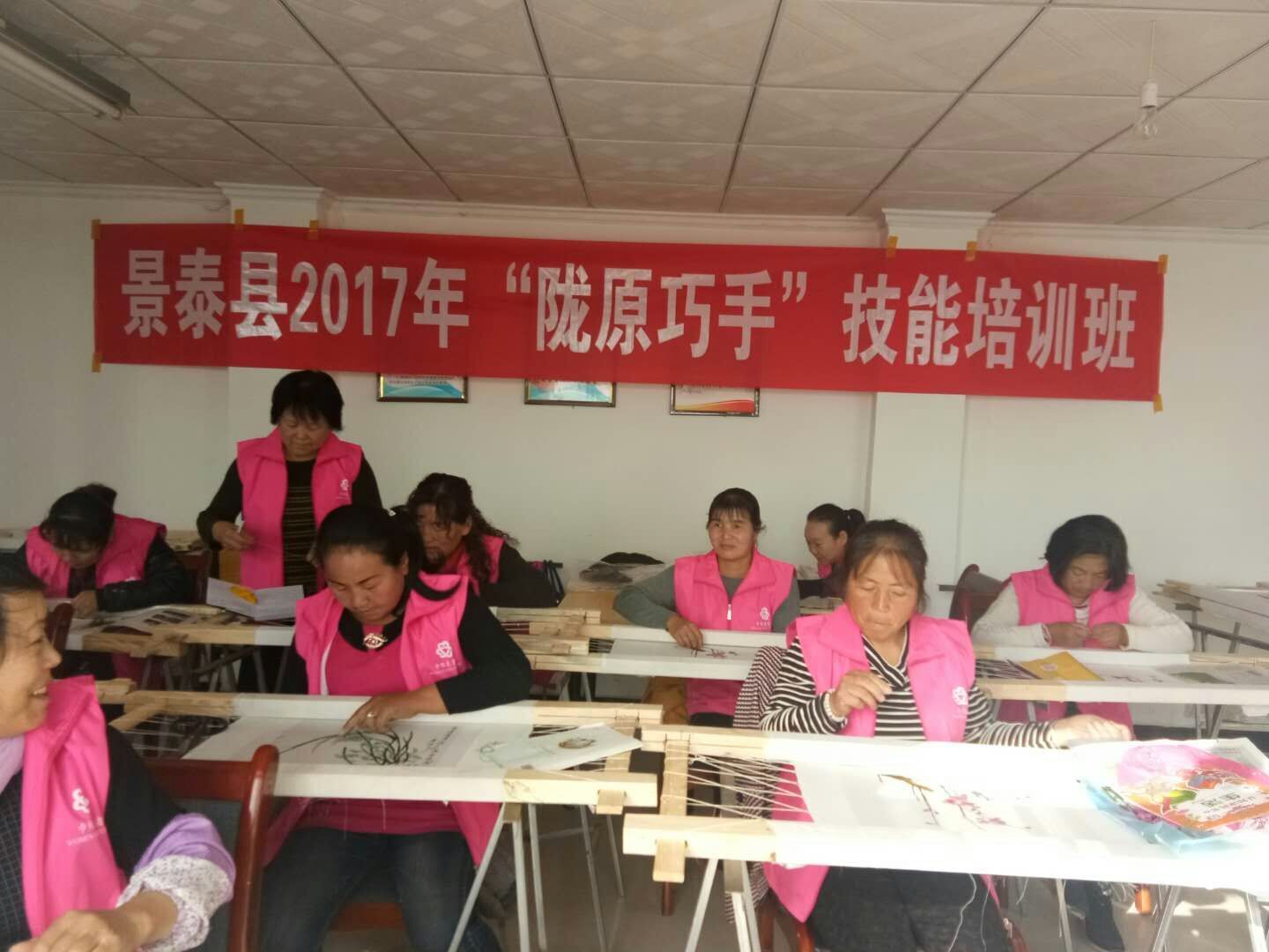县妇联聘请白银市艺术大师、白银市十佳巧手、景泰县手工刺绣能手李慧芳为参训妇女手把手教授手工刺绣技能。
