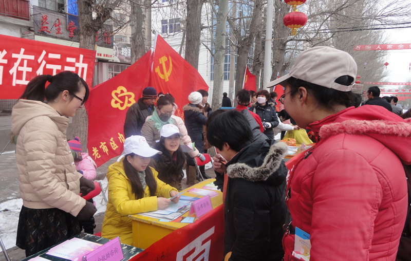 在启动仪式现场,来自各基层妇女组织的巾帼志愿者代表,为老百姓开展了雷锋精神、女性健康以及远离毒品、反邪教、预防爱滋病等相关咨询和宣传服务活动。卫生局妇委会巾帼志愿者们为广大群众解答了各种常见病的预防和治疗问题并为其免费进行了血压的测量等义诊活动;法院妇女小组巾帼志愿者们还开展了《妇女权益保障法》等各项法律法规的宣传咨询活动,活动现场彩旗飘飘,红色的宣传横幅引人注目,前来咨询的人员人头攒动,络绎不绝。
